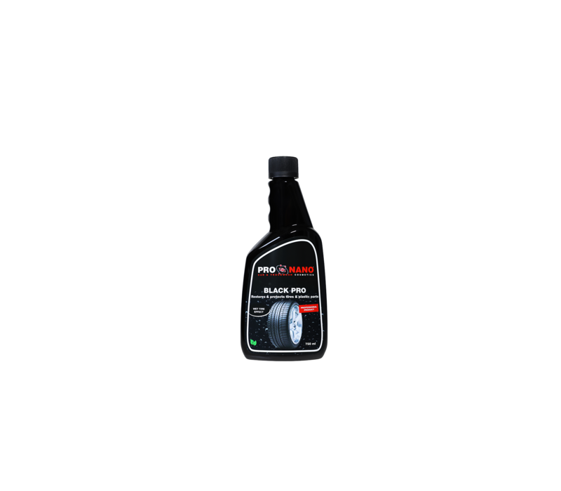ProNano Black Pro ist ein effektiver Restaurator und Schutz für Reifen und Kunststoffteile. Er verleiht unter anderem Reifen, Stoßstangen und Zierleisten einen dezenten Glanz und vertieft die Farbe. Schützt vor Ablagerungen, Verfärbungen und Rissen. ProNano Black Pro wurde speziell für die Restaurierung und den Schutz von Reifen und Kunststoffteilen am Fahrzeugaußenbereich entwickelt. Es bildet eine schützende Beschichtung auf den Reifen, die diese vor schädlicher UV-Strahlung, Verfärbungen, Rissen und Austrocknung schützt. Darüber hinaus sorgt dieser Reifenaufbereiter für einen kosmetischen Effekt, wodurch die behandelten Reifen einen subtilen Glanz erhalten und ihre ursprüngliche tiefschwarze Farbe behalten. ProNano Black Pro eignet sich außerdem hervorragend zur Anwendung auf allen Kunststoffteilen am Fahrzeugaußenbereich, wie Stoßstangen und Zierleisten. Die schützende Wirkung dieses Produkts hält je nach Wetter- und Fahrbedingungen bis zu 2–3 Monate an.